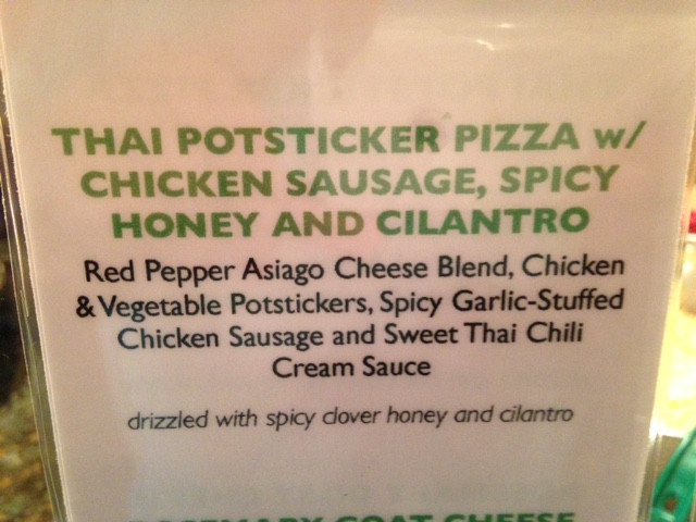 The first pizza was a create your own. You go down the line and choose your toppings. This is the Subway of pizza joints. We chose provolone/mozzarella blend, red sauce, pepperoni, salami, bacon, and butter garlic meatballs. This was the best of the two, but left us wanting. The second pizza was the Thai Potsticker pizza (chicken sausage, spicy honey, cilantro, red pepper asiago blend, and sweet thai chili cream sauce. We had high hopes, but it was very unimpressive. 2 beers, 2 pizzas – $26. Cheap, but not worth it. To be a contender, they need to work on their process. It appears to be set up so that even a caveman can make these pizzas. We won’t be back.