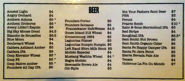 - Very poor beer selection