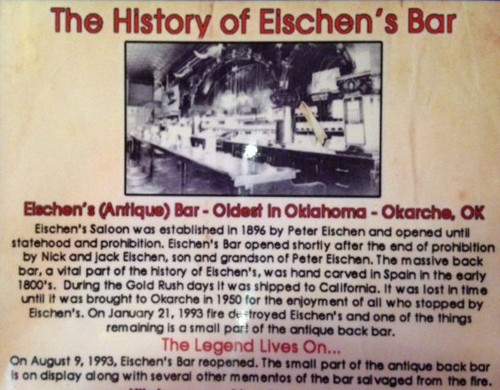 We revisited Eischen’s Bar in Okarche Oklahoma today. We were here two years ago and had some of the best fried chicken we have ever tasted. Today was no different. The chicken is lightly floured but not overly battered, and cooked to perfection. Tender, moist, and tasty. This chicken can’t be beat. The only negative: 3.2 beer. We’ll be back next trip.