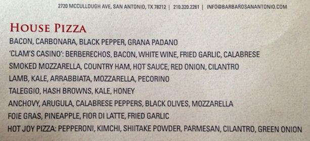 Someone told Henry that we should try this place. We thank them whoever they are. Barbaro Pizza is located in the Monte Vista neighborhood at the corner of McCullough and Huisache in a building built in 1950. Great Pizza! Great Beer! Great Service! Our server Ashley was very attentive, but not overbearing. She was always there when we needed her.